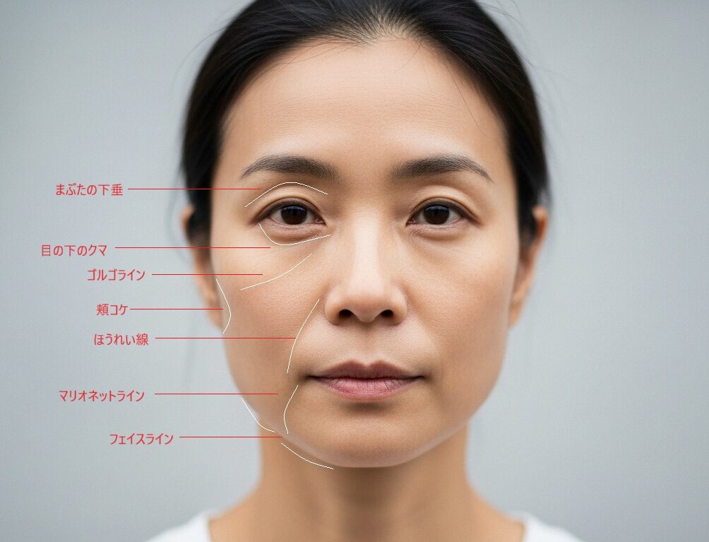 - 少し進んでいるたるみ → ヒアルロン酸注入や糸リフトを組み合わせるとより効果的!